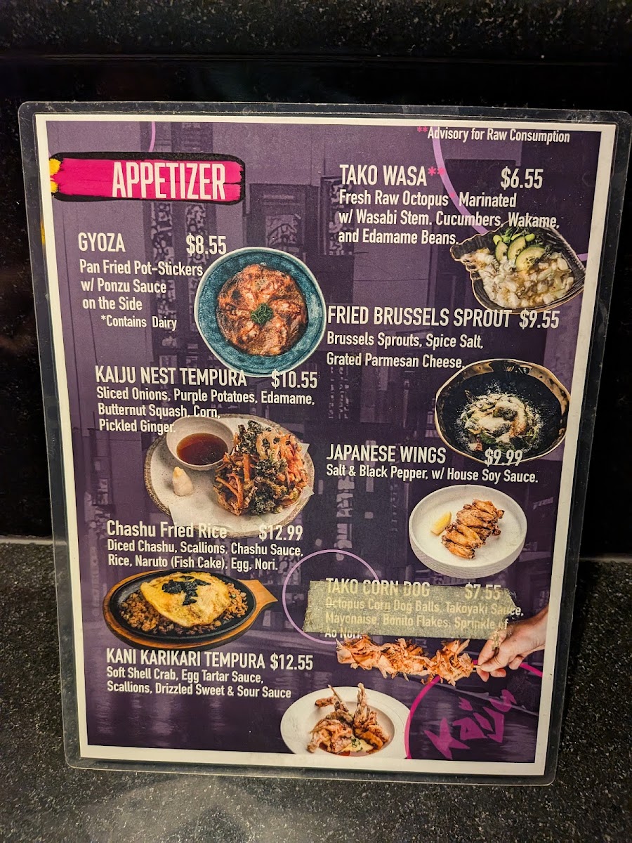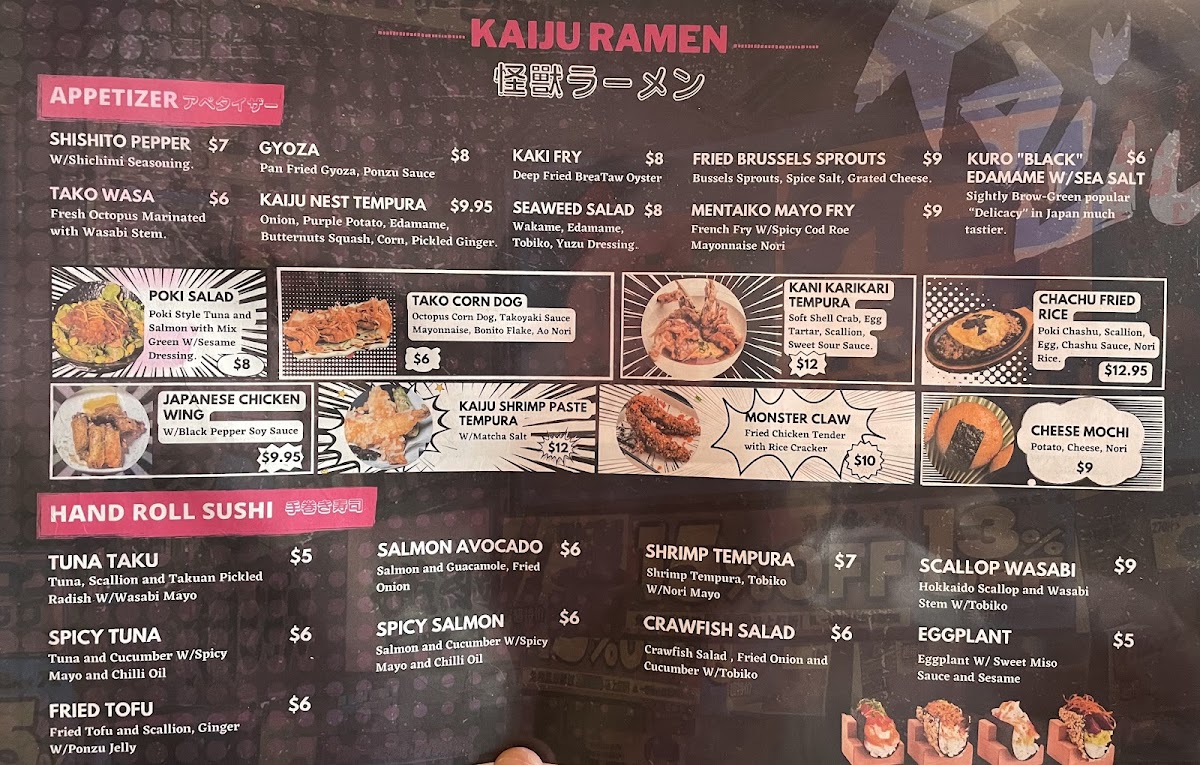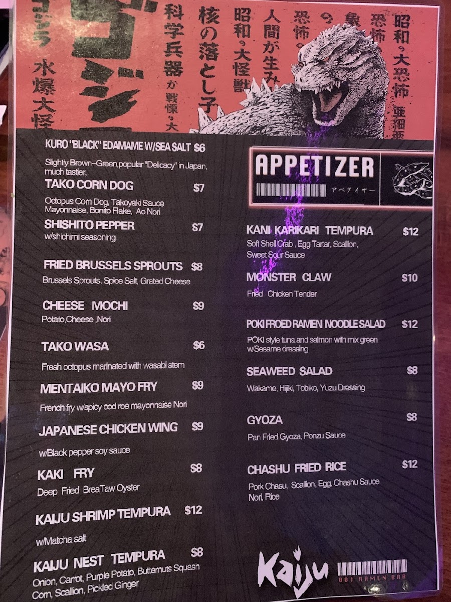 Welcome to the Kaiju Ramen Menu, where comfort food meets bold flavors in every bowl. Located at 525 8th St SE #1, Washington, DC, this ramen spot offers a delicious selection of rich broths, tender noodles, and mouthwatering toppings. Whether you're craving a classic Shoyu or looking to try something new like the spicy miso tonkotsu, each dish is crafted with the finest ingredients to bring you a satisfying experience. The menu also features a variety of appetizers, from crispy gyoza to savory bao buns, perfect for starting your meal. Whether you're here for a quick bite or a leisurely dinner with friends, the flavors at Kaiju Ramen are sure to hit the spot. Every bite is a celebration of tradition with a modern twist, making it a must-try for ramen lovers in the area.
